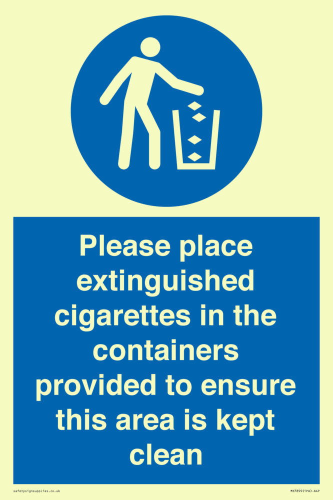 Sign Text: Please place extinguished cigarettes in the containers provided to ensure this area is kept clean