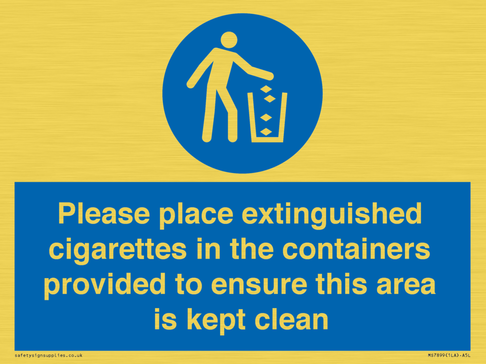 Sign Text: Please place extinguished cigarettes in the containers provided to ensure this area is kept clean