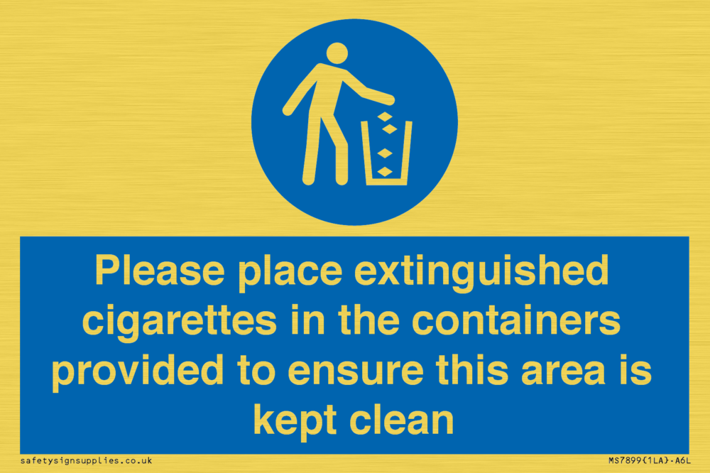 Sign Text: Please place extinguished cigarettes in the containers provided to ensure this area is kept clean