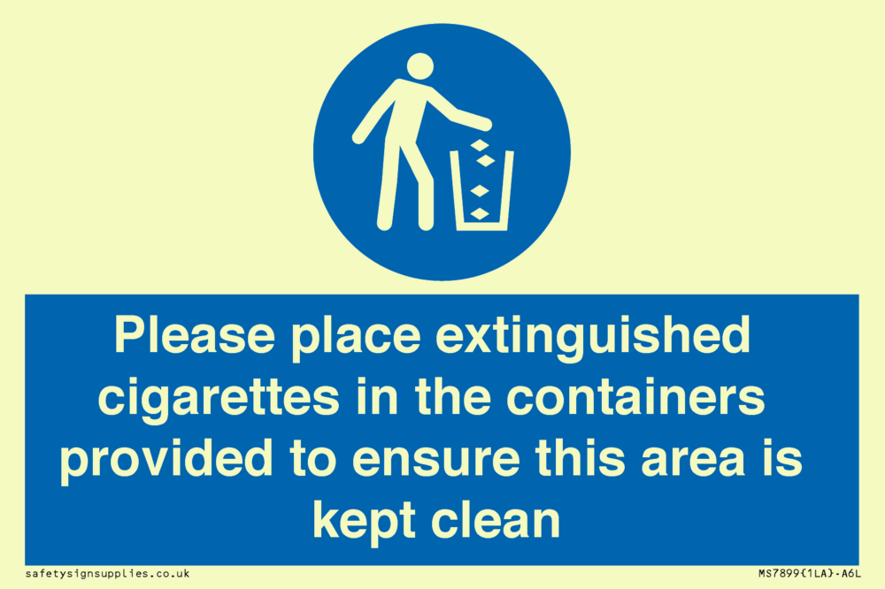 Sign Text: Please place extinguished cigarettes in the containers provided to ensure this area is kept clean