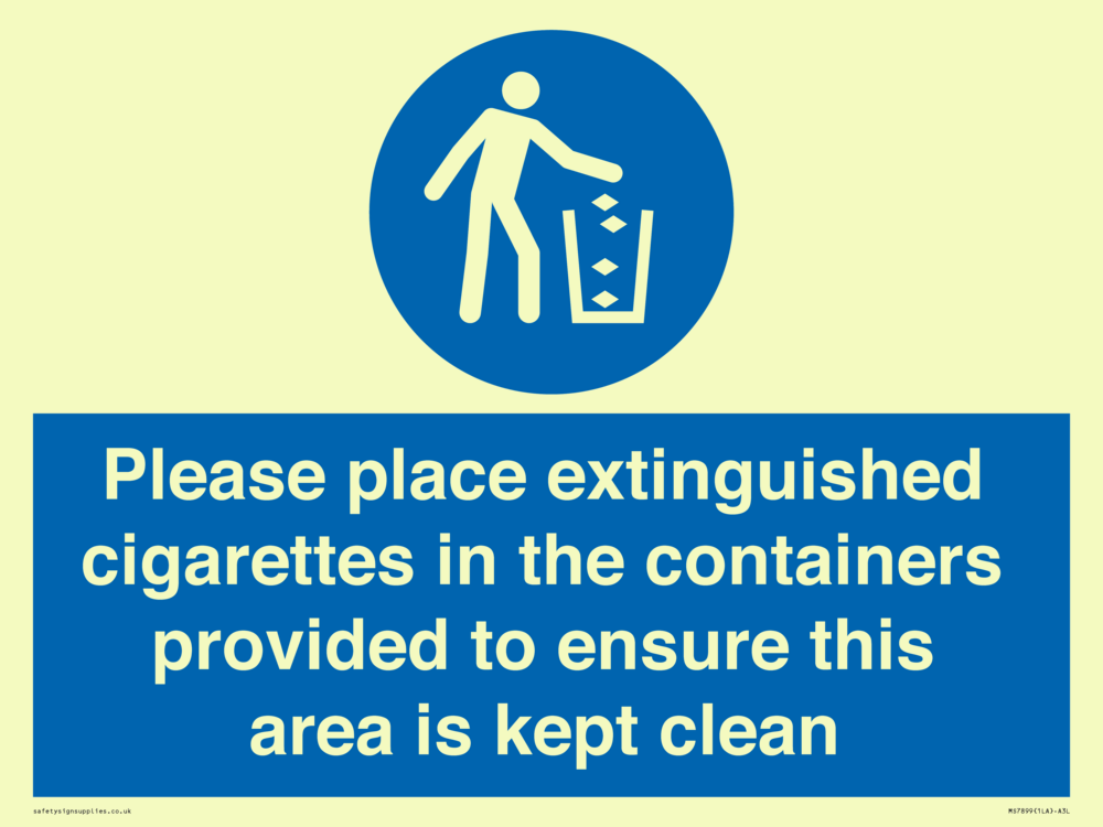 Sign Text: Please place extinguished cigarettes in the containers provided to ensure this area is kept clean