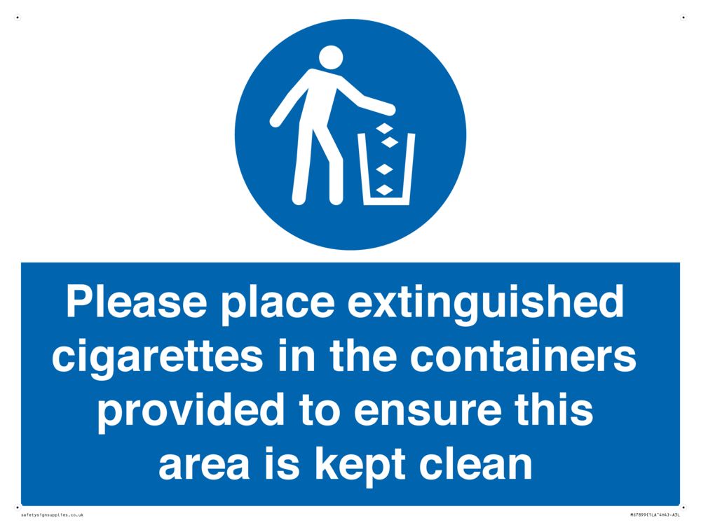 Sign Text: Please place extinguished cigarettes in the containers provided to ensure this area is kept clean