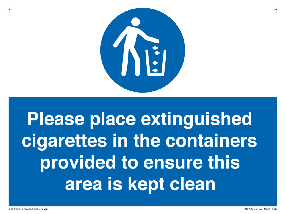 Sign Text: Please place extinguished cigarettes in the containers provided to ensure this area is kept clean