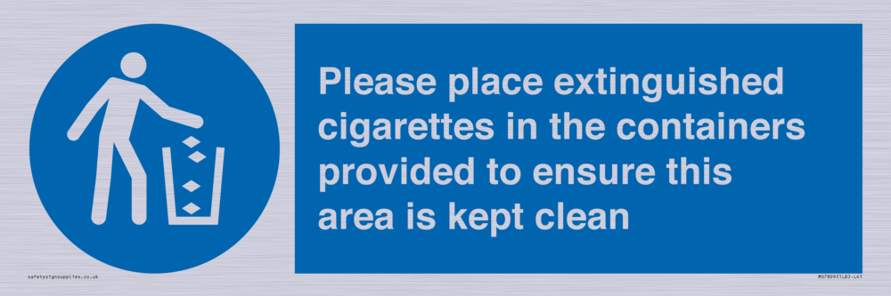 Sign Text: Please place extinguished cigarettes in the containers provided to ensure this area is kept clean