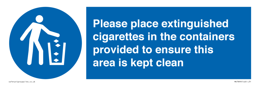 Sign Text: Please place extinguished cigarettes in the containers provided to ensure this area is kept clean