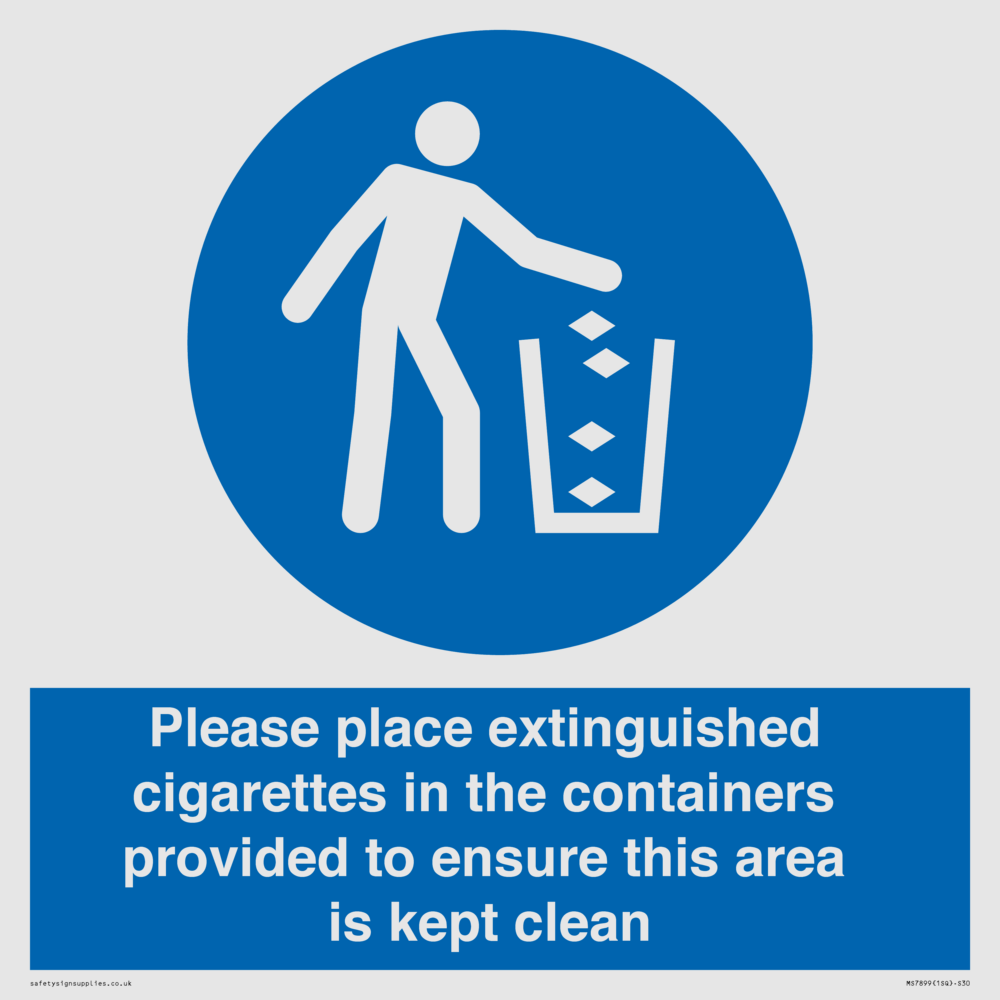 Sign Text: Please place extinguished cigarettes in the containers provided to ensure this area is kept clean