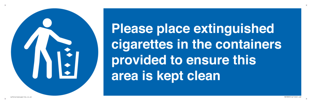 Sign Text: Please place extinguished cigarettes in the containers provided to ensure this area is kept clean