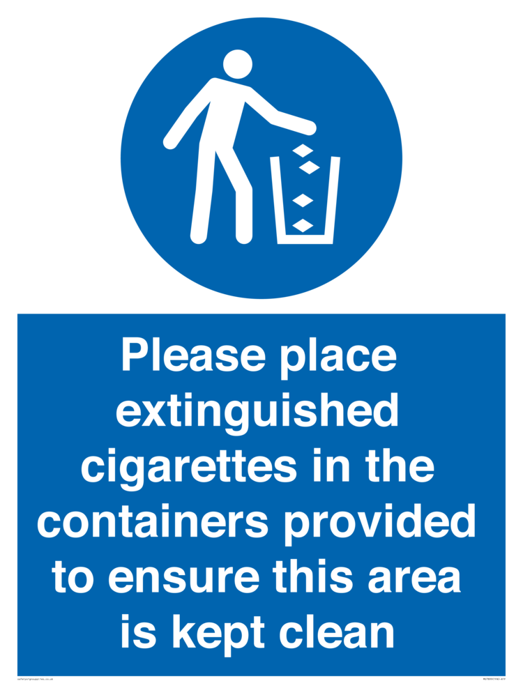 Sign Text: Please place extinguished cigarettes in the containers provided to ensure this area is kept clean