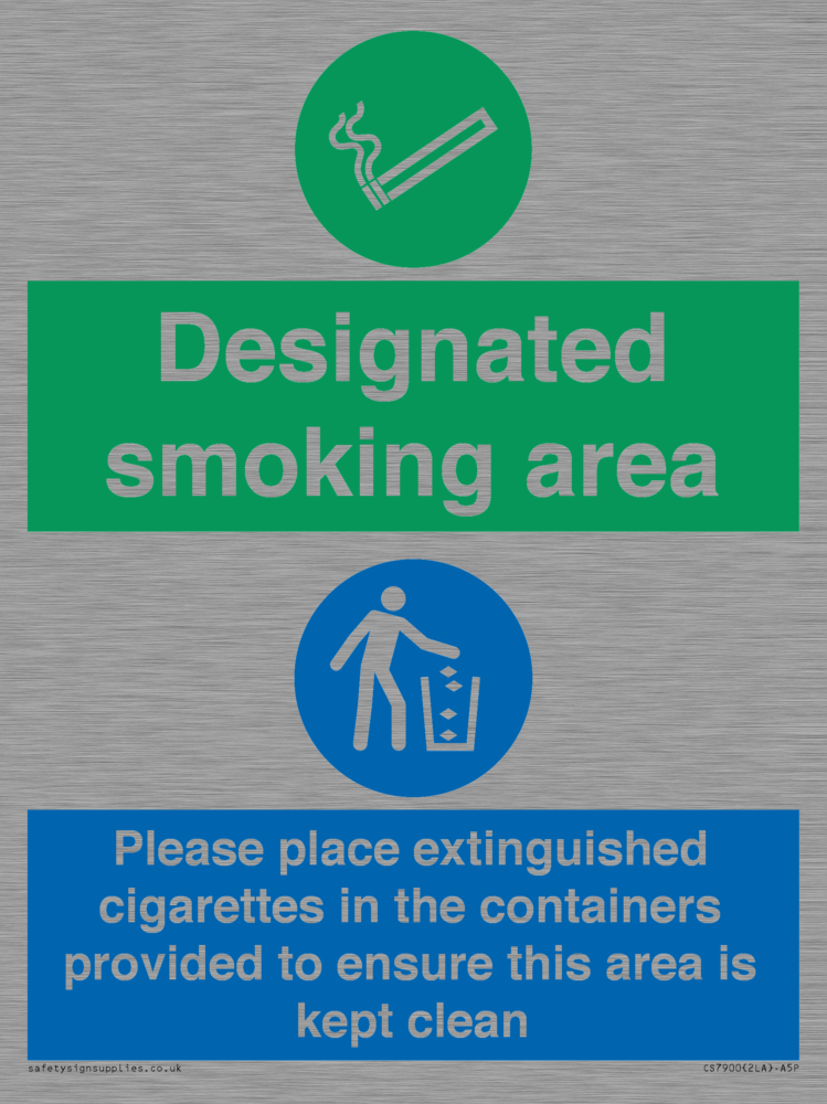 Sign Text: Designated smoking area