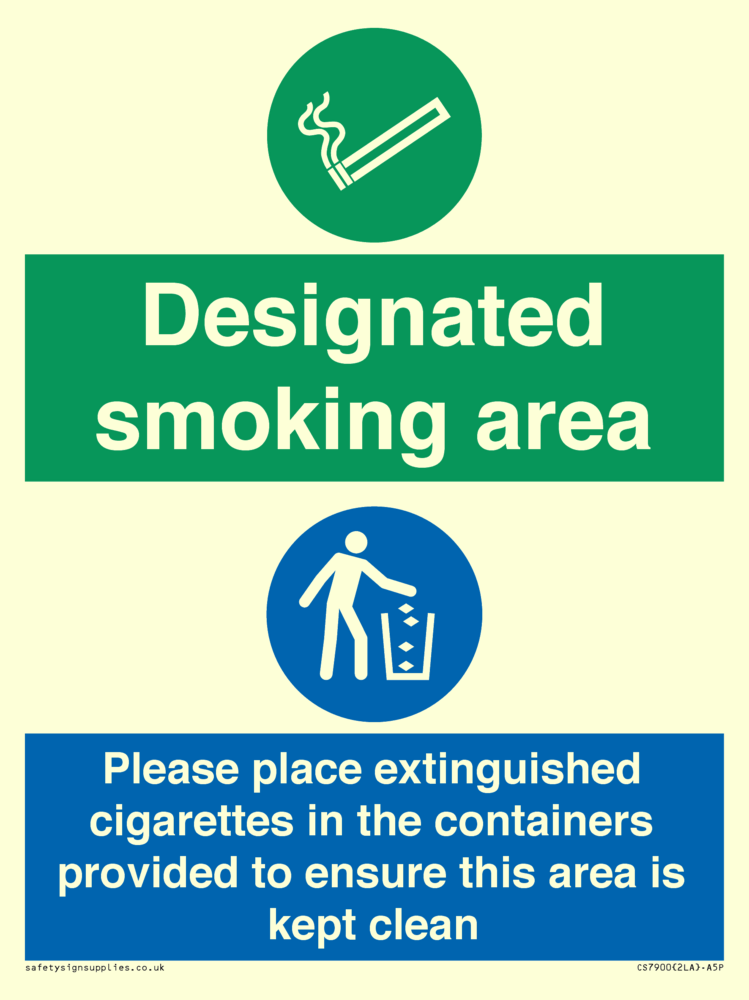 Sign Text: Designated smoking area