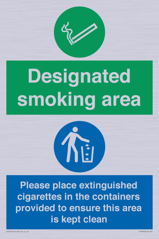 Sign Text: Designated smoking area