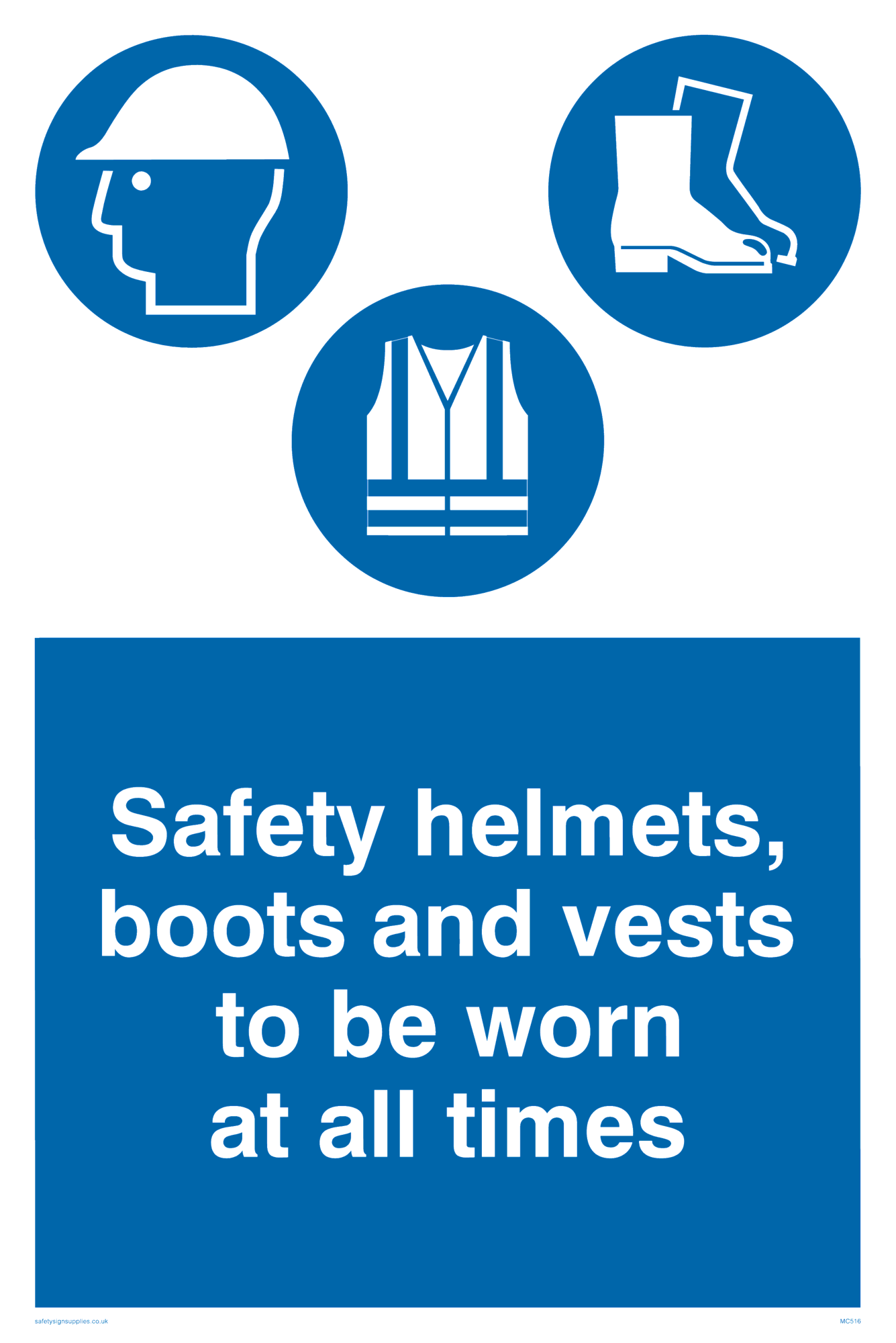 PPE / Personal Protective Equipment Signs are used to indicate when and which types of PPE should be used. Construction Signs are used on building and construction sites to show safety policy requirements or hazards. This sign is medium sized.