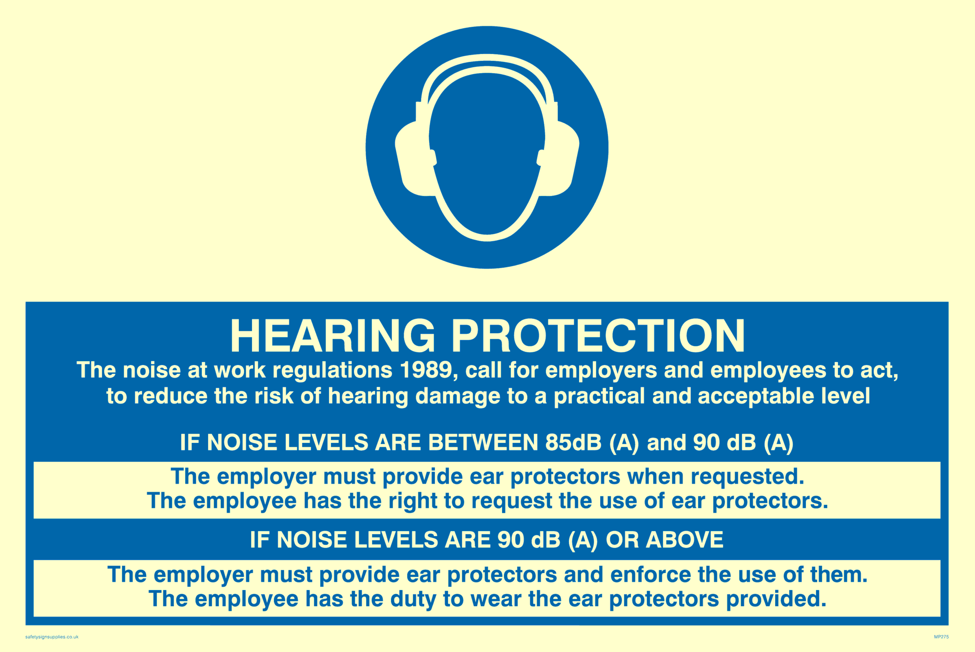 This signs help you comply with the Control of Noise at Work 2005 regulations. Where applicable the noise levels indicated in dB(A) comply with this standard.
