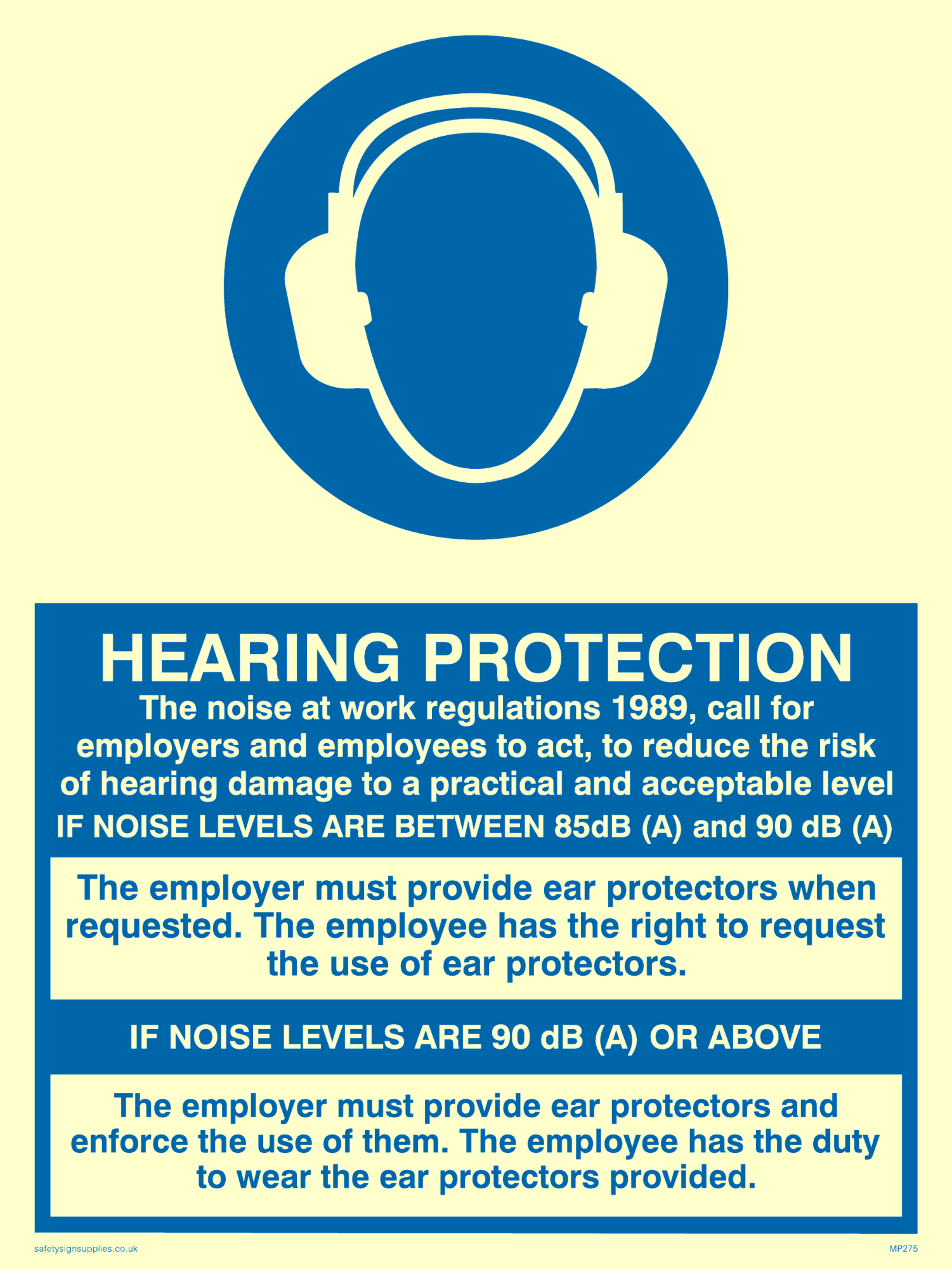 This signs help you comply with the Control of Noise at Work 2005 regulations. Where applicable the noise levels indicated in dB(A) comply with this standard.