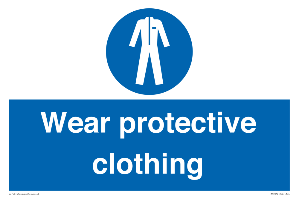 Sign Text: Wear protective clothing