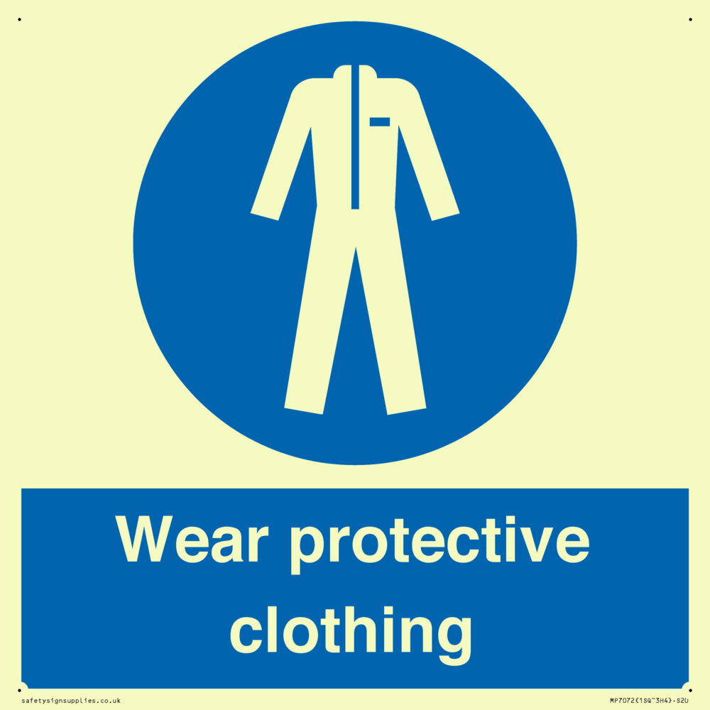 Sign Text: Wear protective clothing
