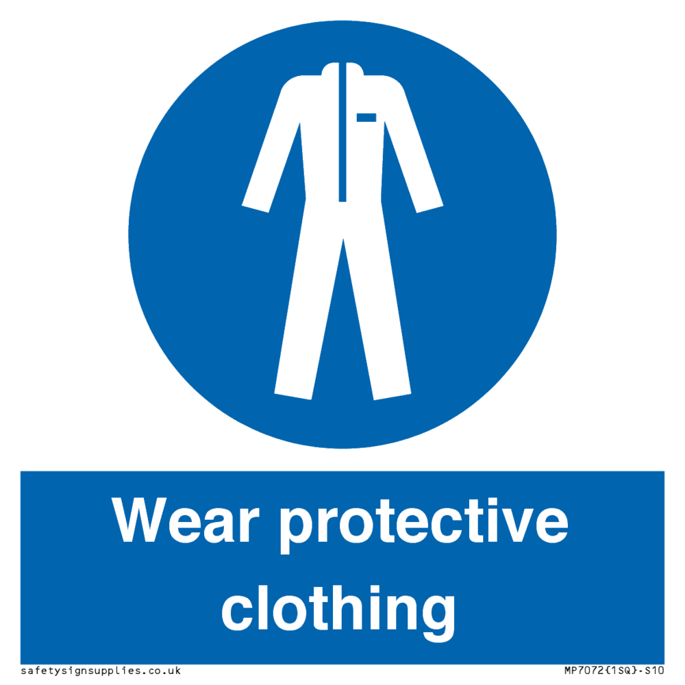 Sign Text: Wear protective clothing