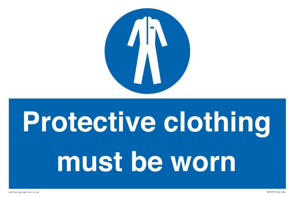Sign Text: Protective clothing must be worn