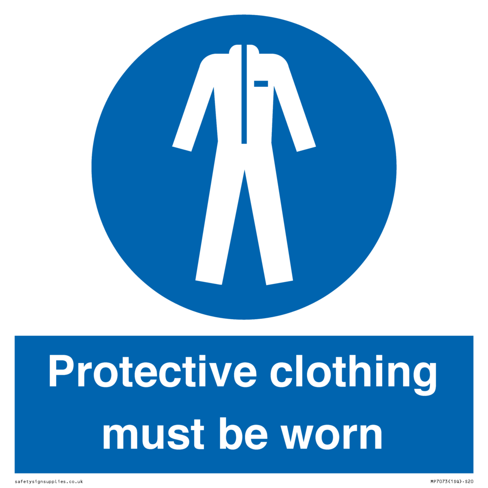 Sign Text: Protective clothing must be worn
