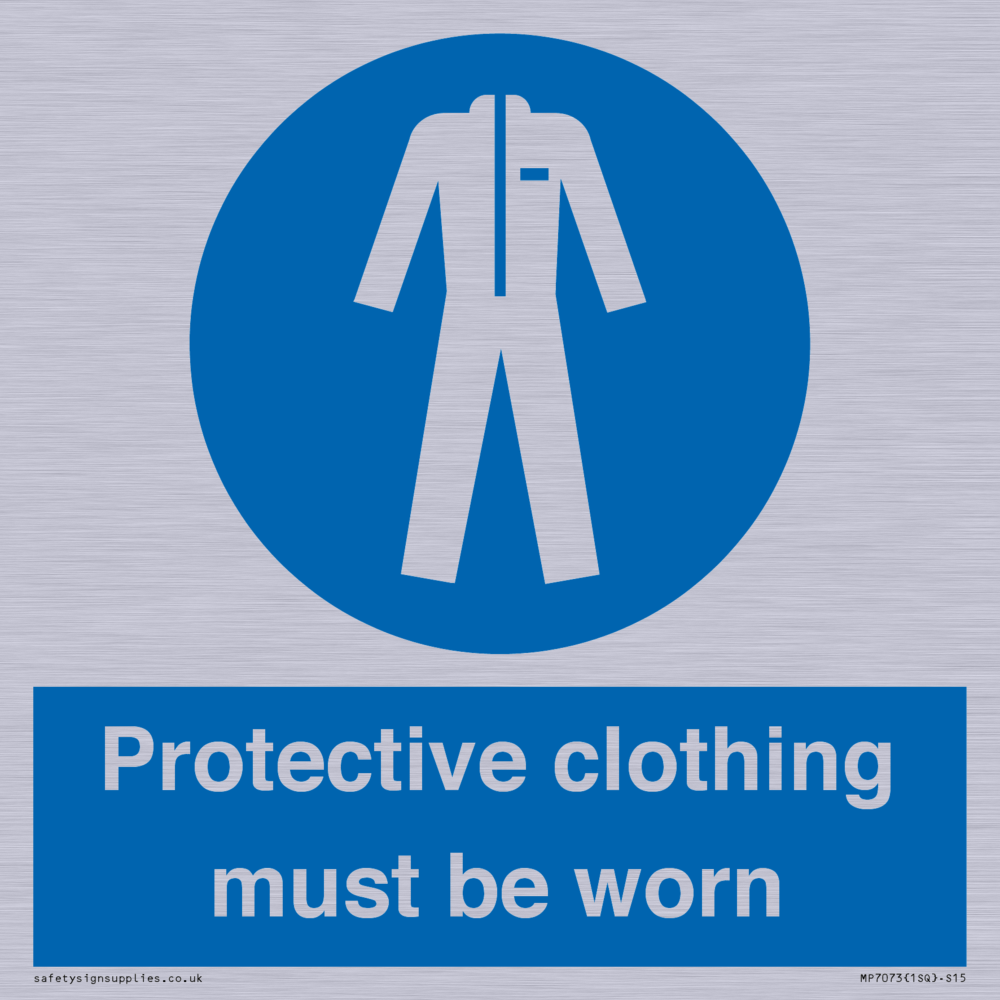 Sign Text: Protective clothing must be worn