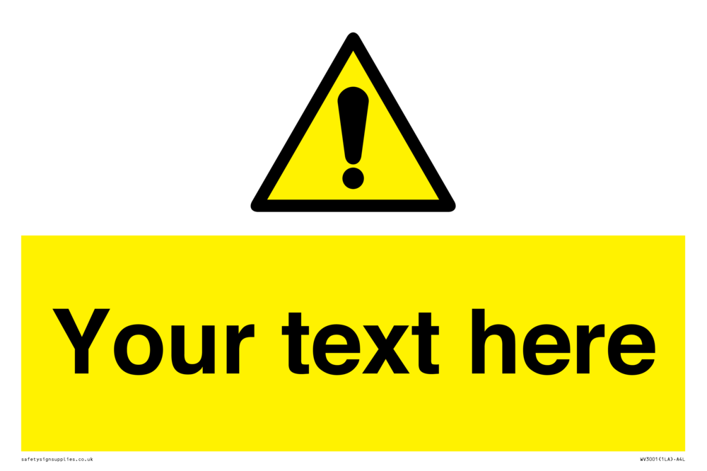 Custom warning safety sign with warning symbol - black exclamation in yellow triangle.