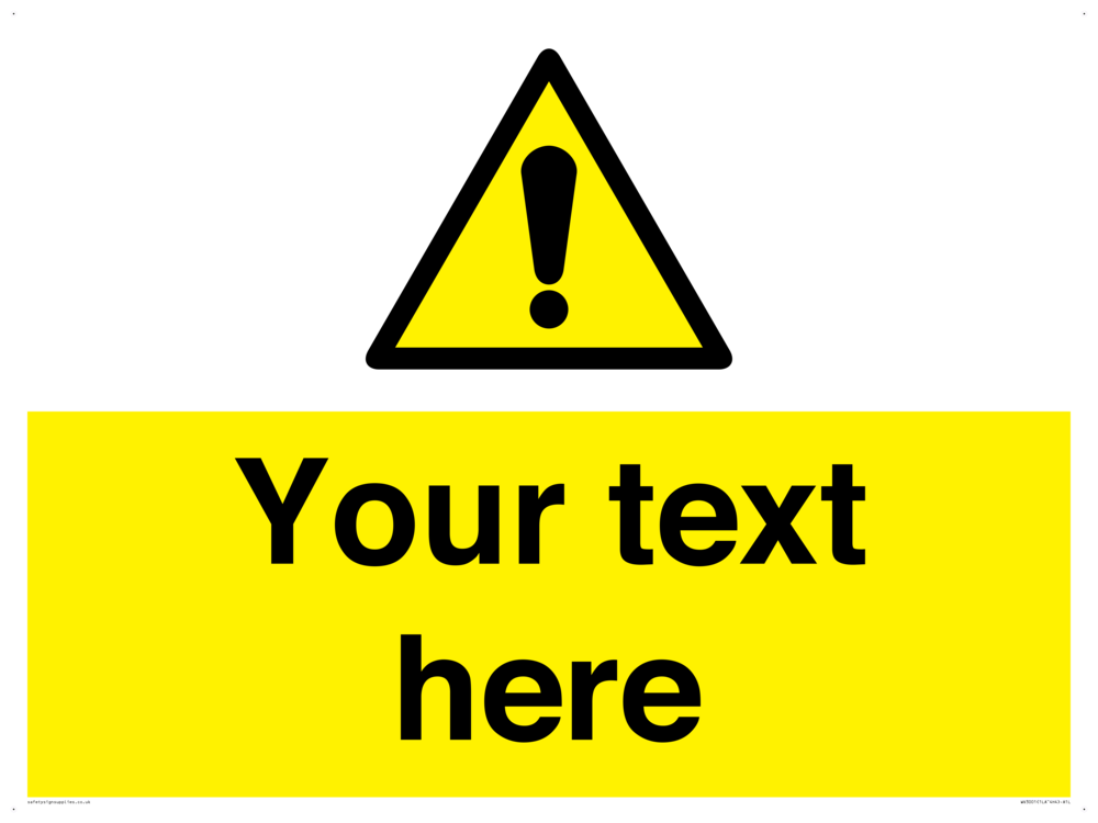 Custom warning safety sign with warning symbol - black exclamation in yellow triangle.