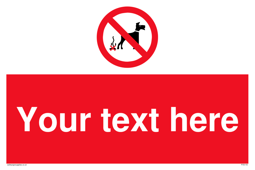 Custom No Dog Fouling Sign. Add your own custom text. Normal delivery times apply. Red No Dog Fouling Symbol. This symbol and sign layout complies with new EN7010 legislation that governs safety signs.