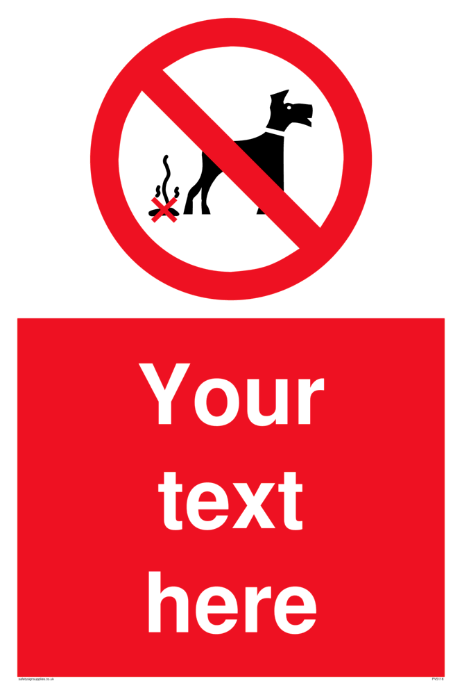 Custom No Dog Fouling Sign. Add your own custom text. Normal delivery times apply. Red No Dog Fouling Symbol. This symbol and sign layout complies with new EN7010 legislation that governs safety signs.