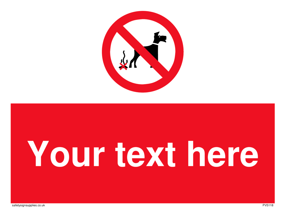 Custom No Dog Fouling Sign. Add your own custom text. Normal delivery times apply. Red No Dog Fouling Symbol. This symbol and sign layout complies with new EN7010 legislation that governs safety signs.