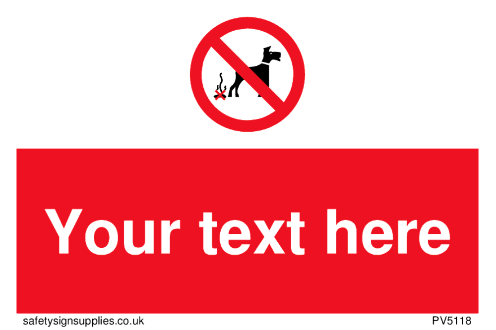 Custom No Dog Fouling Sign. Add your own custom text. Normal delivery times apply. Red No Dog Fouling Symbol. This symbol and sign layout complies with new EN7010 legislation that governs safety signs.