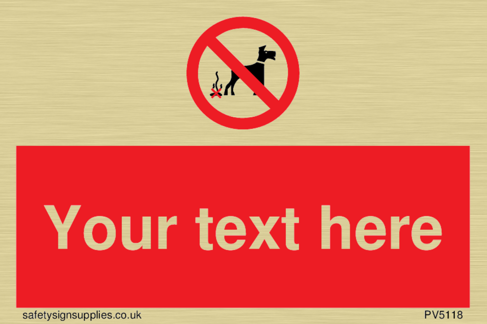 Custom No Dog Fouling Sign. Add your own custom text. Normal delivery times apply. Red No Dog Fouling Symbol. This symbol and sign layout complies with new EN7010 legislation that governs safety signs.