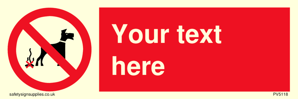 Custom No Dog Fouling Sign. Add your own custom text. Normal delivery times apply. Red No Dog Fouling Symbol. This symbol and sign layout complies with new EN7010 legislation that governs safety signs.