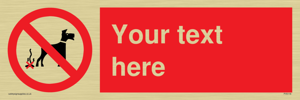 Custom No Dog Fouling Sign. Add your own custom text. Normal delivery times apply. Red No Dog Fouling Symbol. This symbol and sign layout complies with new EN7010 legislation that governs safety signs.