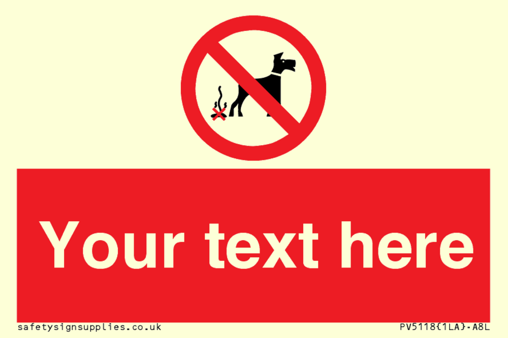 Custom No Dog Fouling Sign. Add your own custom text. Normal delivery times apply. Red No Dog Fouling Symbol. This symbol and sign layout complies with new EN7010 legislation that governs safety signs.