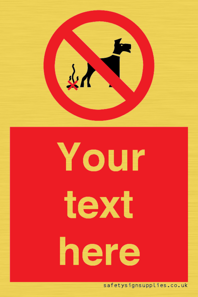 Custom No Dog Fouling Sign. Add your own custom text. Normal delivery times apply. Red No Dog Fouling Symbol. This symbol and sign layout complies with new EN7010 legislation that governs safety signs.