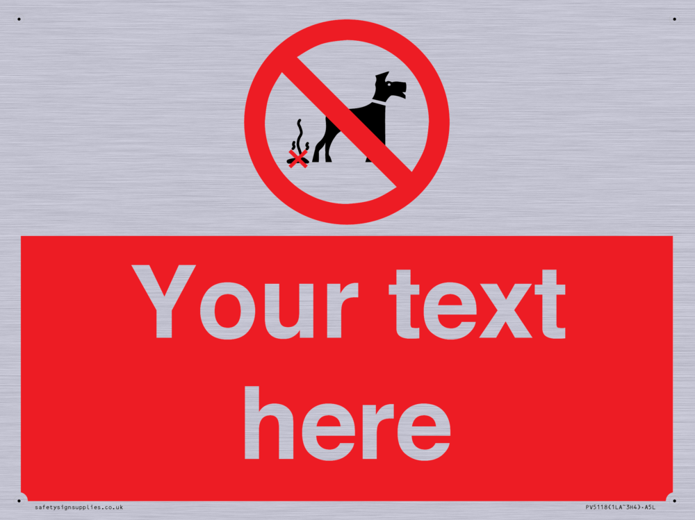 Custom No Dog Fouling Sign. Add your own custom text. Normal delivery times apply. Red No Dog Fouling Symbol. This symbol and sign layout complies with new EN7010 legislation that governs safety signs.