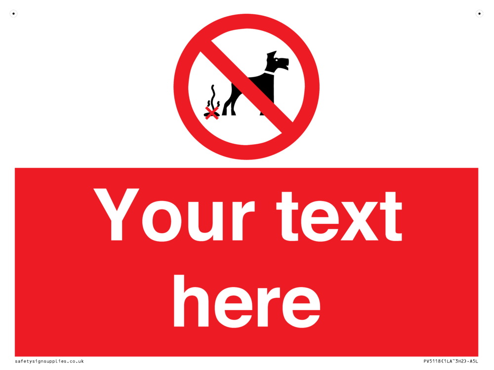 Custom No Dog Fouling Sign. Add your own custom text. Normal delivery times apply. Red No Dog Fouling Symbol. This symbol and sign layout complies with new EN7010 legislation that governs safety signs.