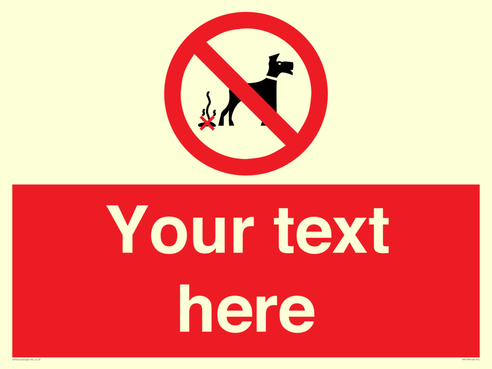Custom No Dog Fouling Sign. Add your own custom text. Normal delivery times apply. Red No Dog Fouling Symbol. This symbol and sign layout complies with new EN7010 legislation that governs safety signs.