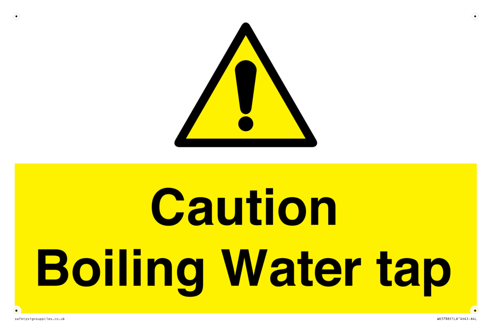 Boiling Water tap safety warning sign with exclamation in warning triangle