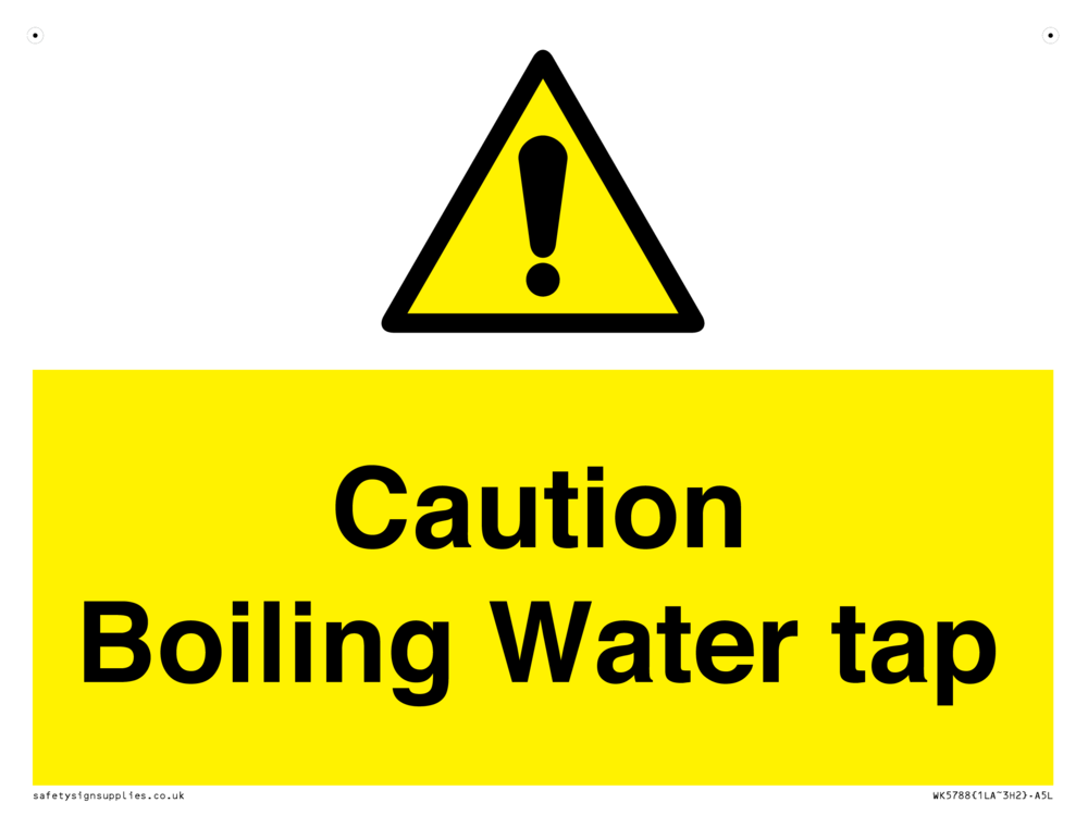 Boiling Water tap safety warning sign with exclamation in warning triangle