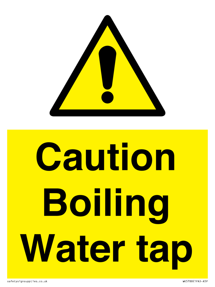 Boiling Water tap safety warning sign with exclamation in warning triangle