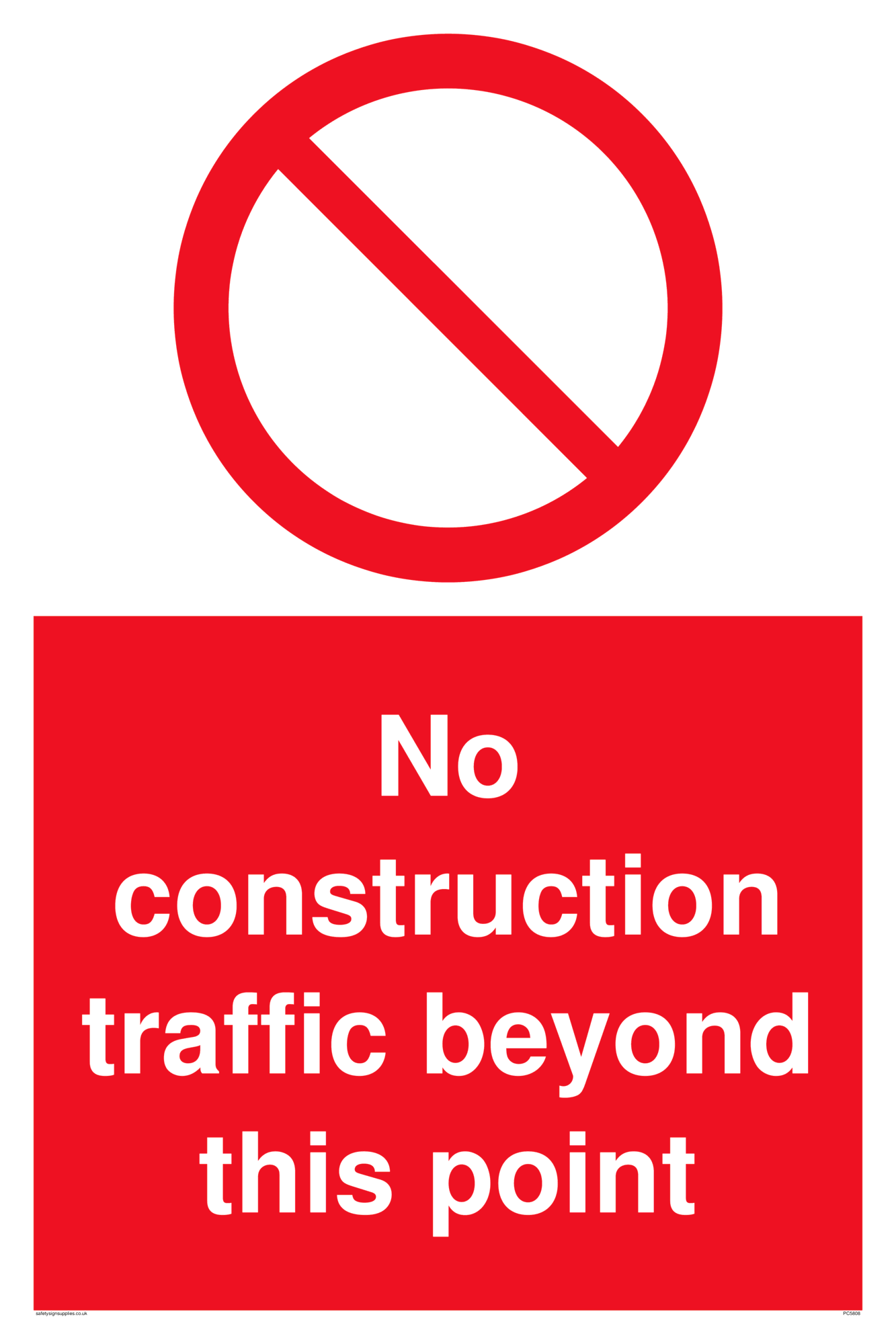 No construction traffic beyond this point with prohibition symbol