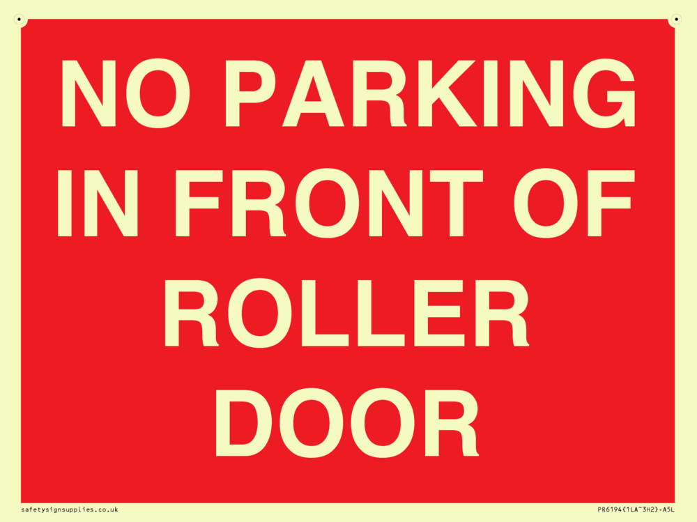 Sign Text: NO PARKING IN FRONT OF ROLLER DOOR