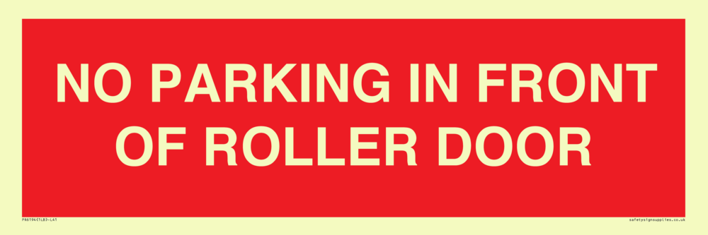 Sign Text: NO PARKING IN FRONT OF ROLLER DOOR