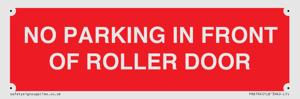 Sign Text: NO PARKING IN FRONT OF ROLLER DOOR