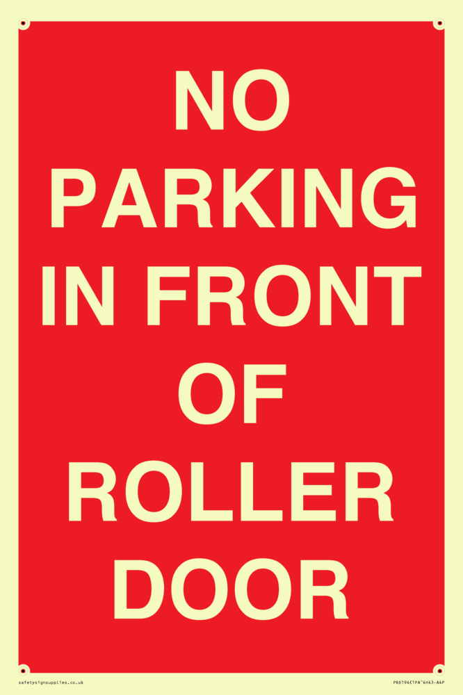 Sign Text: NO PARKING IN FRONT OF ROLLER DOOR