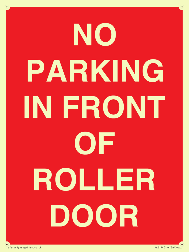 Sign Text: NO PARKING IN FRONT OF ROLLER DOOR