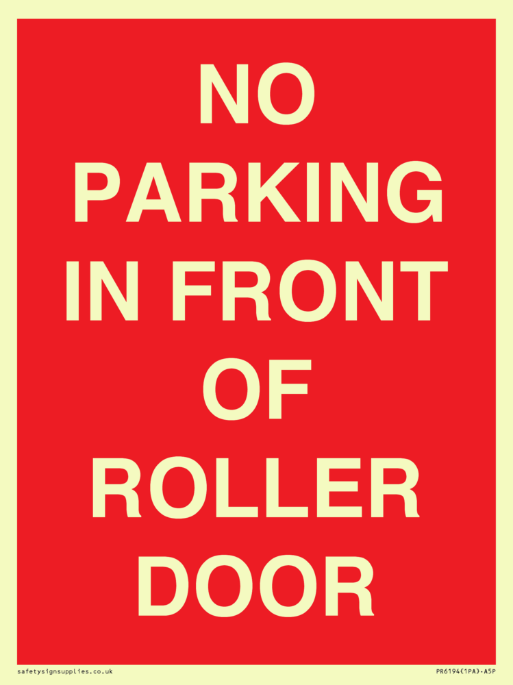 Sign Text: NO PARKING IN FRONT OF ROLLER DOOR