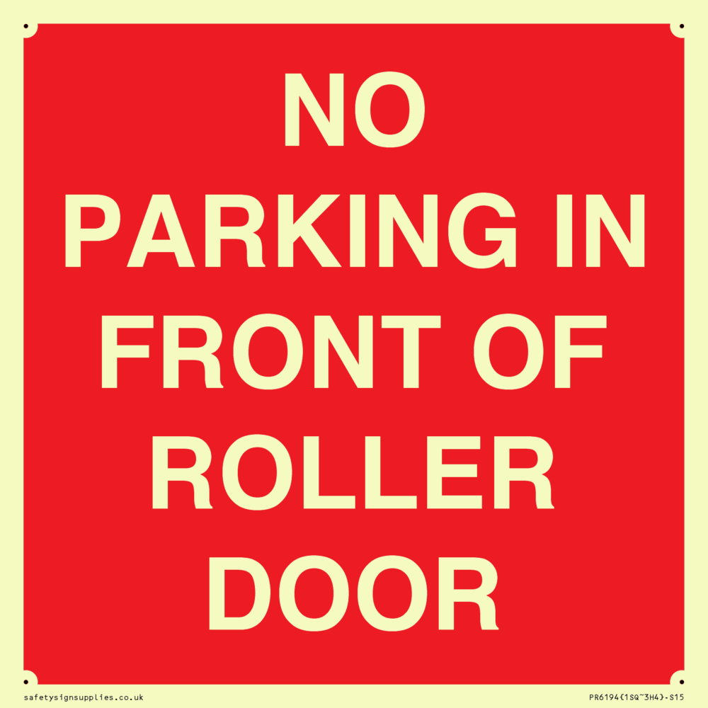 Sign Text: NO PARKING IN FRONT OF ROLLER DOOR
