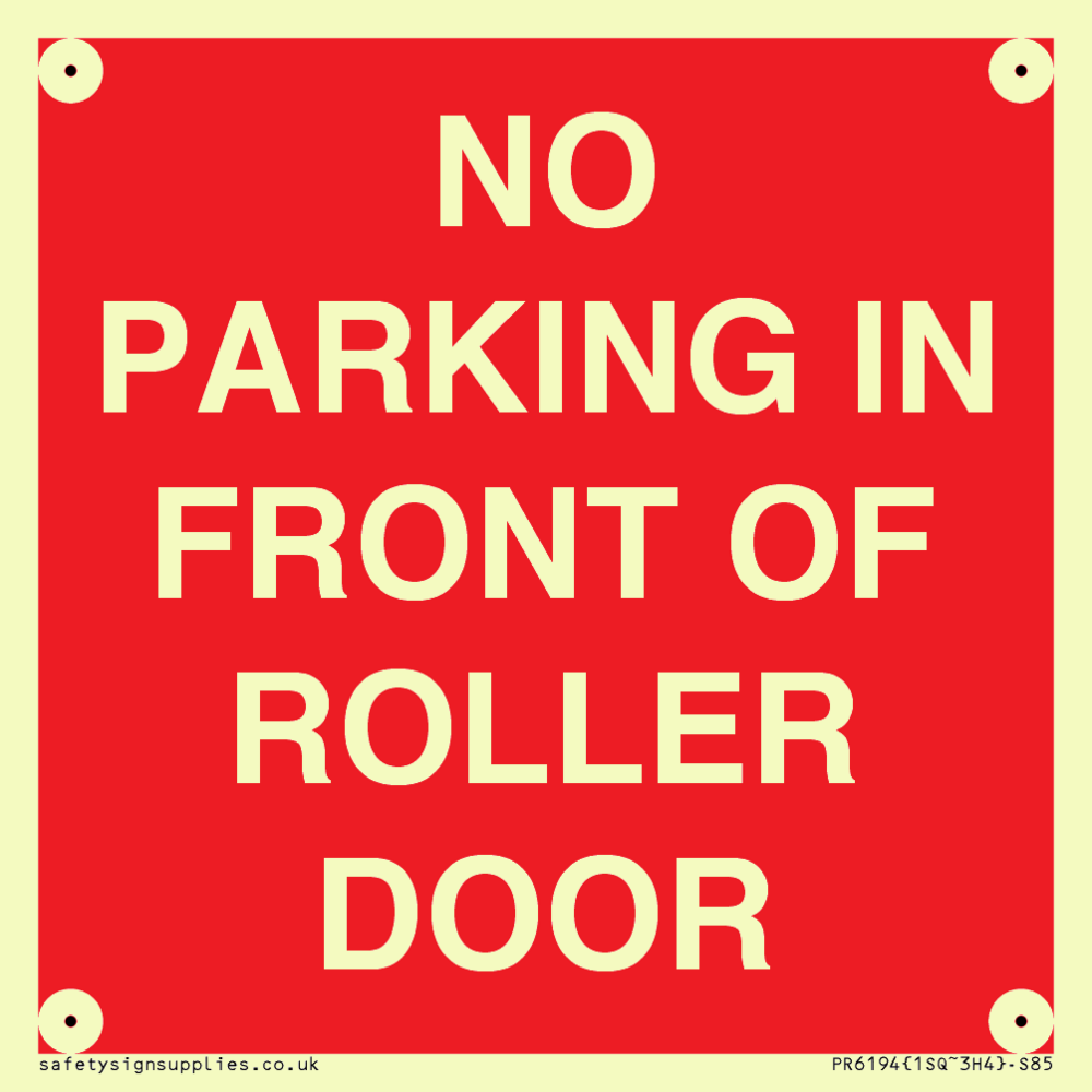 Sign Text: NO PARKING IN FRONT OF ROLLER DOOR